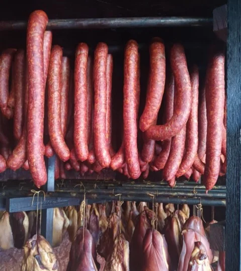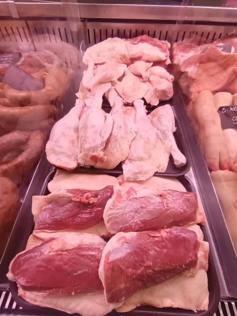 Friss húsokkal, háztáji baromfival, Magyar húsokkal, házi hagyományos füstölésű árukkal,